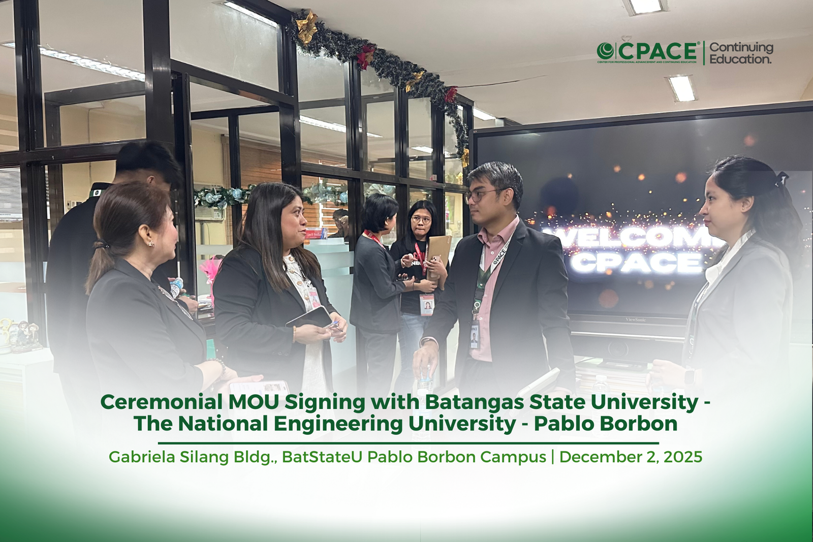 The CPACE Philippines has signed a Memorandum of Understanding with the Batangas State University (BatStateU) the National Engineering University to scale up its efforts to promote quality education and career growth among business management students.