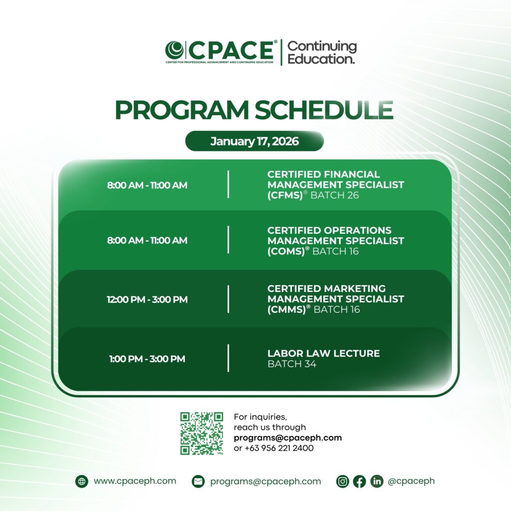You will be notified via email. Passers will also be posted on the CPACE Philippines’ official website and social media platforms.